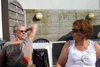 Coucou Marie Jo, c'est nous Du 7 au 15 Juillet Comme il y avait un certain temps que nous n'étions pas parti, nous décidâmes de rendre visite à MARI-JO l'Amie d'enfance de Domi, résidant en Bretagne. La porte à coté me direz vous..... 830 Kms sans autoroute... c'était parfait pour nous! Nous voila donc en route pour LANDIVISIAU (entre Brest et Morlaix), toujours dans la neuve voiture, pour rejoindre notre Amie qui nous attendait de pied ferme et gros sourire (comme d'habitude), assise sur sa magnifique terrasse. Le soleil à était de la partie toute la semaine, ce qui fait dire à Marie Jo, qu'en Bretagne, il ne pleut que sur les Cons. Nous l'avons vérifié, pas une goutte de pluie durant 8 jours, donc les cons c'est pas nous. Malgré ce soleil de plomb, la joyeuse copine nous à traîné tous les jours (sans exception) en visite dans une grande partie de son pays, pour terminer en apothéose avec toute la famille, par le fabuleux feu d'artifice du 14 juillet. A Landivisiau, on ne lésine pas sur le Feu d'artifice .... Petit mystère tout de même, au pays de l’artichaut, ils confondent les euros et les francs, car à 1.40€ la bête, nous nous en sommes privés. Par contre, araignées de mer et gros tourteaux n'ont pas résisté longtemps aux pinces meurtrières des deux Dames, Marie-Jo et Domi très gourmandes de fruits de mer et de leurs petites pattes. Voila encore une belle semaine que nous n'oublierons pas de sitôt, et quelques belles images de ces très belles vacances.....