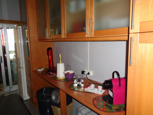 PETITE VISITE DE NOTRE APPARTEMENT Glicinias Plaza et notre JUMBO Notre immeuble Hall d'entrée de l’étage sortie de l'ascenseur Entrée Appartement Entrée Cuisine avec placards de rangement La cuisine Préparation du bourguignon et salade pour midi Salle à Manger Toilettes de service Chambre d'Ami et sa Salle de bain Le Bureau La cage d'escalier montant à l'étage Le Palier de l'étage