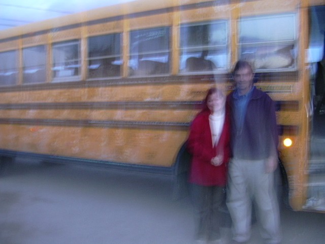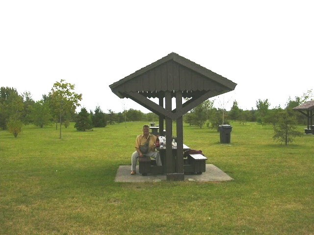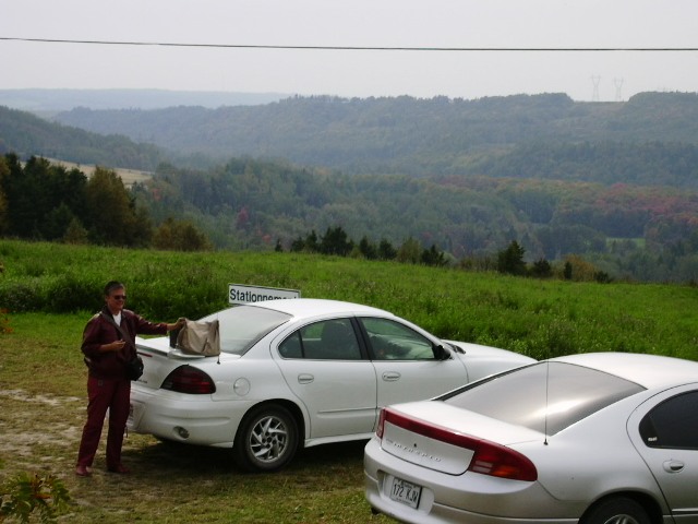 d'arrivée, et comme il pleut un peu nous restons dans le char, en