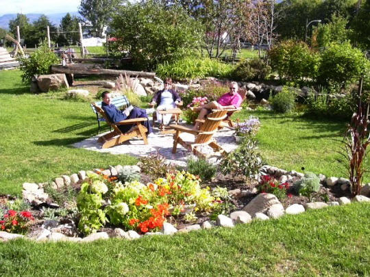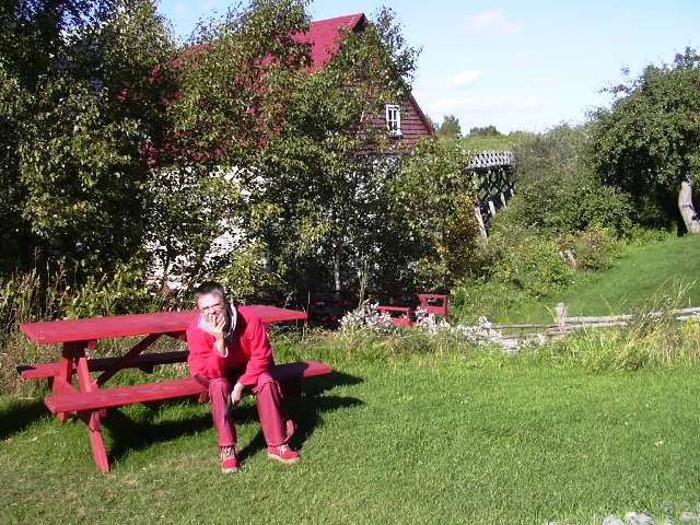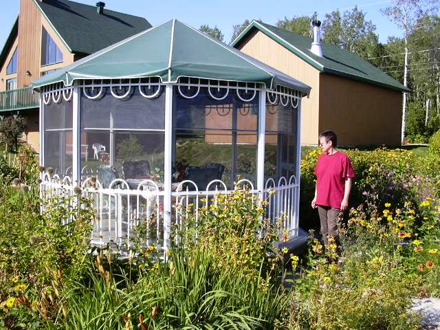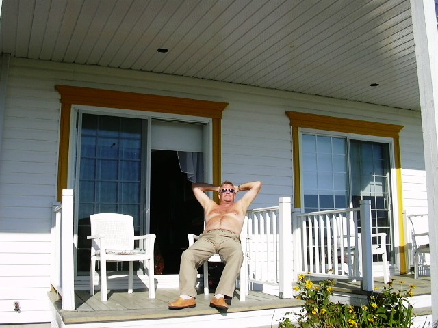 terrasse arrière, devant la fenêtre, Mais Maurice le déplace en fonction