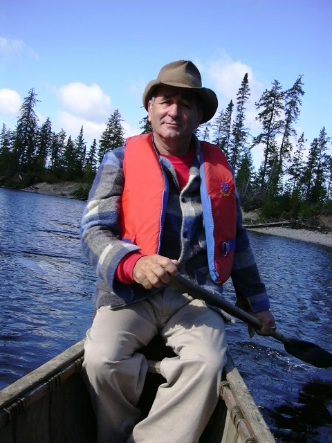 sur la rivière en canoë, il nous fera visiter les 19 chiens qui