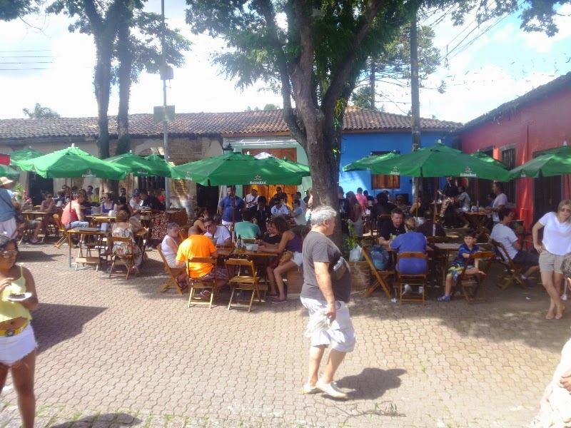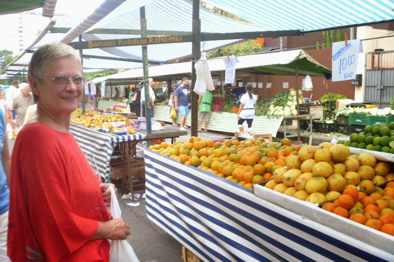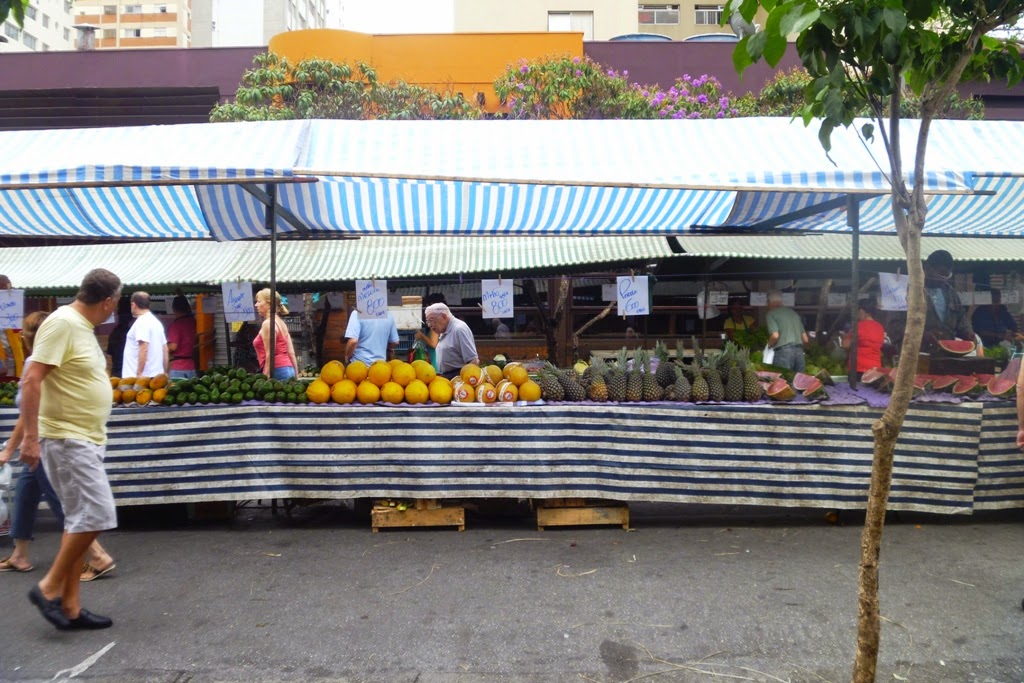 Le Marché au bas de la rue et Le pitchou Toan est déjà venu nous réveiller à 8 heures 25, heure à laquelle son réveil se met sur la position debout. Comme à l’habitude, le café du matin est pris sur la terrasse. Il fait déjà chaud à 9 heures. Vers 11h 30, nous allons faire un tour au petit marché local, dans la rue au bas de l’immeuble. Un très bel étalage de fruits, de légumes, avec quelques marchands de poissons, viandes et fromages, en fait tout ce qu’il faut pour égayer Domi et peut-être, les repas de la semaine. Nous rentrons pour déjeuner et déguster les fruits achetés au marché … La Papaye, et la Pomme Cannelle. Puis nous partons en visite vers EMBU, une petite ville artisanale (de 300.000 âmes quand même), très connue des brésiliens et située à une trentaine de kms de Sao Paulo. C’est un endroit presque magique, où chaque rue est différente, où chaque boutique en cache une autre, décoration, antiquités, galeries d’art, sculpteurs ou fabricants de meubles en bois, mais aussi des groupes musicaux très locaux distillant de la musique appropriée et où il n’est pas rare de voir un danseur s’exhiber presque en transe devant un public réjoui. Heureusement, il y a aussi des bistrots et des petits restaurants ombragés, où nous nous sommes installés pour profiter d’une petite collation typique et nous abreuver, pendant qu’un orage très menaçant approchait. Toan s’est fait offrir un capteur de rêves qu’il avait découvert chez son copain Max, et Michou s’est acheté une petite banane en cuir pour mettre les « réals » à l’abri, voila pour nos achats. En parcourant les rues, nous avons dégusté des « BRIGADEIROS », une succulente confiserie au chocolat la plus typique du Brésil. Quand à Toan, il a dégusté une brochette de fraises enrobées de chocolat…..pas moins succulente !!! Les célèbres BRIGADEIROS