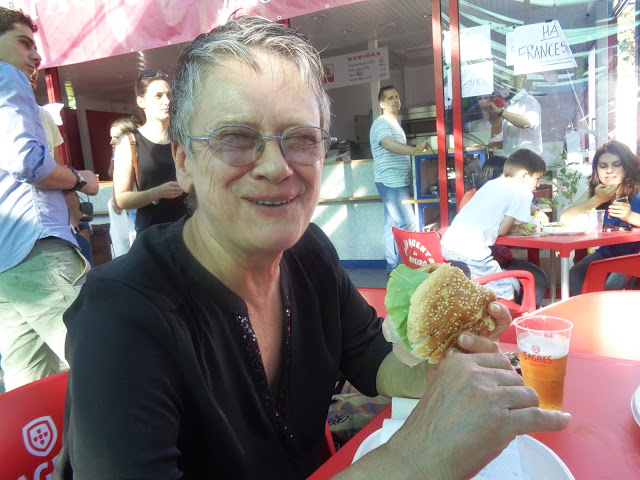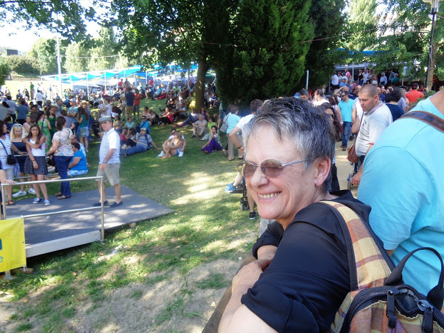 Sever do Vouga Devenant de plus en plus sérieux en langue portugaise, nous avons compris en lisant le journal qu'il se passait quelque chose d’important et d'intéressant à quelques 25 kms de chez nous. Une fois que nous avions compris le sens du mot MIRTILO, qui se traduit par MYRTILLE en bon gaulois, nous décidâmes d'un commun accord, de nous rendre à cette petite Feira do Mirtilo le dimanche 26 juin après-midi par un temps superbe.... Un petit coup de carrosse, et nous y voila rendus une trentaine de minutes plus tard , le trajet fut magnifique, nous avons en effet suivis les gorges de la Rivière VOUGA jusqu'a SEVER do VOUGA, un charmant village de 12000 habitants, ou nous avons eu quelques petits soucis pour garer l'automobile. Cela étant fait et ayant enfin trouvé la place, nous nous sommes rendus pédibus, à l'endroit ou se tenait les festivités, en fait nous n'avions qu'à suivre les visiteurs et descendre au bas de la ville. Un endroit charmant, assez ombragé dans la vallée le long d'une petite rivière descendant de la montagne, avec une retenue d'eau ou les enfants s'en donnaient à cœur joie sur des canoes. C'était très rafraichissant. Nous avons traversé les boutiques qui pour l'occasion ne manquent pas, ou l'on pouvait acquérir pour quelques pistoles, toutes sortes de choses à base de "mirtilo", en confitures, en marmelade, au sirop et en magnifiques bouteilles de liqueurs Etc....Vous pouviez même faire l'acquisition d'un chapeau, tee-shirt ou casquette à la gloire de ce fruit magique. Nous avons ensuite fait le tour de l'endroit ,mais le soleil brulant de cette belle journée dominicale nous à obligé, comme beaucoup d'autres, à nous assoir dans l'herbe fraiche à une belle ombre um copo de Super bock à la main, dans l'attente du début des spectacles. Nous n'avons pas attendu très longtemps avant que la fête commence, le traditionnel accordéoniste chanteur monta sur scène (érigée sur l'eau) pour mettre l'ambiance en entonnant des chants typiquement portugais et surement un peu coquins.... Quoi qu'il en soit l'ambiance était assurée et le millier de personnes (selon la police et les organisateurs, car ici ils ont la même machine à compter) entonnait les chants les uns après les autres, pendant que nous nous chargions d'applaudir, ne comprenant évidemment aucun mot de ce que pouvait bien raconter notre accordéoniste. Nous nous sommes ensuite déplacés car un petit creux nous titillait l'estomac, et bien sur dans toutes ces joyeuses fêtes portugaises, un endroit est prévu et même dédié à l'ombre pour la bonne ripaille.... La chaleur aidant,