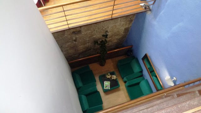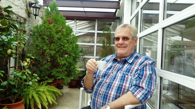 DOMI ET LES OIGNONS.... Vous connaissez tous l'attachement de Domi pour les oignons au vinaigre. Mais pas n'importe lesquels, seulement les oignons rouges de Carrefour Market à VILAR FORMOSO, à la frontière Hispano-portugaise. Ben voila! un jour ou l'autre le stock s'épuise, malgré un réapprovisionnement des enfants à Noël, on à eu droit à la panne et devant la détresse infinie de Domi, le Michou à vite organisé une virée à la frontière pour refaire le stock des fameux bulbes de plantes herbacées bisannuelles de la famille des Amaryllidaceae appelées très vulgairement OIGNONS. Le gentil monsieur de Carrefour les rassemble donc dans un bocal rempli de vinaigre, ce qui leur donne un gout absolument délicieux pour Domi et à gerber pour le Michou. Mais bon! tout est prétexte à faire une sortie, surtout par un beau temps de février. La frontière se situe à quelques 190 Kms, en totalité d'autoroutes, nous mettrions donc 1h45 environ pour traverser le Portugal d'Ouest et Est, mais pourquoi se presser ? De ses petits doigts encore un peu agiles, le Michou à cherché sur son clavier, une étape ou nous pourrions passer deux nuits (oui, il faut bien ça) ce qui nous donnerait l'occasion, en plus d'acquérir les fameux oignons, de visiter un peu cette région du Nord/Est du pays, que nous ne maitrisons pas encore. Nous avons donc opté pour la petite ville de GUARDA qui je vous l'accorde, n'est qu'à 30 Minutes de la frontière, mais bon il faut bien se poser en un lieu. A 1 060 mètres d'altitude la ville de Guarda est perchée sur le contrefort oriental de la Serra da Estrela, la chaine de montagne ou l'on pratique le ski, et qui est le point culminant (1993 m) du Portugal continental. Avec une population de 30000 habitants, elle est la ville (fortifiée bien sur) la plus haute du Portugal. Effectivement nous avons fait un excellent choix, et nous allons donc passer deux nuits dans un très bel endroit, L’hôtel SANTOS, somptueux, bâti dans le granit des anciennes fortifications, et en plein centre ville. A 300 mètres à pieds des vieilles rues, des restaurants, des petits bars, de la cathédrale, du musée et de l'immense shopping... Nous y arrivons tranquillement le vendredi vers 17 heures, ce qui nous laisse le temps de nous installer et de faire connaissance avec les charmants propriétaires. Notre Chambre Nous allons ensuite faire un petit tour dans la ville, à pied bien sur, et entrons dans un énorme shopping ou d'ailleurs nous prendrons un excellent Kebab (au poulet) de chez ALI BABA avec une bonne bière, avant de rentrer à la chambre pour un repos réparateur car demain, nous ferons les 30 Kms restants pour l'approvisionnement en oignons, faire le plein de l'automobile avec un Gazoil à 1.07€ en Espagne, et investir dans quelques petites bouteilles alcoolisées... Le Shopping Une KIA de sport (PUB) Le serveur de chez ALI BABA Bien sur! la Salade Tiens! une petite visite de l’hôtel, ça vous tente ? Nous avons dormi dans le granit Des petits salons Les employées très aimables Le petit déjeuner La terrasse sur le toit de l’hôtel avec vue sur la ville Après une bonne nuit, nous partons pour la frontière faire nos courses, un petit encas à midi, et avant de rentrer, nous faisons une promenade dans le village de Vilar-Formoso ou la seule chose à voir était une Cigogne sur le toit de l'église. En rentrant à l’hôtel nous avons fait un petit détour par Almeida, autre ville fortifiée ou nous avons manqué d'un jour la Feira do Fumeiro, une tradition dans le nord du Portugal, les foires de la charcuterie fumée artisanale, durant la période des amandiers en fleurs. Un très beau village. Le soir, à la recherche d'un petit resto typique, nous vaquons un peu dans les vieilles rues de la ville, et passons devant l’imposante Sé de Guarda. ("Sé" veut dire cathédrale en portugais, vous suivez? Un immense podium en cours de montage, pour la fête de Carnaval sur le parvis de la Cathédrale Le repas du soir au restaurant O Ferrinho dans les petites rues de Guarda. Un