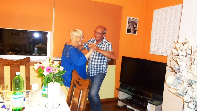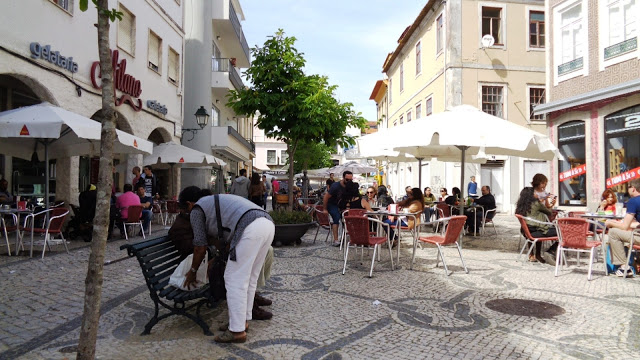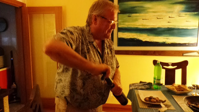 Notre mois de mai à été particulièrement actif et nous avons profité des quelques belles journées pour flâner autour d'Aveiro et recevoir quelques amis et voisins. Voici en quelques images choisies le récit de ces quelques journées UN LUNDI AU MARCHE D'ESPINHO. Nous ne pouvons pas aller au marché d'Espinho sans faire un tour sur la promenade bordant l'Océan, ou nous trouvons chaque fois un bon restaurant pour empiffrer un bon gros poisson grillé. NOTRE AMI CARLOS Nous avions été conviés à l'anniversaire de l'agence immobilière de Carlos, l'ami bienfaiteur lors de notre arrivée au Portugal. L'Agence Bella Casa à Gafanha de Nazaré, avait sorti le grand jeu, avec bolos et spumante à volonté. Nous avons aussi connu et apprécié, la liqueur du Portugal "Le BEIRAO" LE GÂTEAU DE PÂQUES. Un gros gâteau qui comme les autres tient très bien au corps, ou l'on trouve au milieu...des œufs cuits. Disponible avec plusieurs œufs en fonction du nombre de convives et de l'appétit de chacun. Très délicieux avec un bon apéro et quelques fraises. Um folar da Pascoa LES DERNIÈRES ŒUVRES DE DOMI Depuis le temps que je lui dis qu'elle devrait exposer! Elle n'a pas perdu la main bien au contraire. UN APÉRO AVEC NOS VOISINS. Depuis quelques semaines nous avons de nouveaux voisins, Andréa et Marcus, et Victor, leur futur gendre étudiant à la faculté d'Aveiro, qui nous viennent tout droit du Brésil, et de Sao Paulo pour être exact, donc nous ne sommes pas en pays totalement inconnu dans nos conversations. La seule difficulté est la compréhension des mots qui sortent de leur bouche, mais cela va bien nous aider.... on s’accroche, on s’accroche et on progresse. Nous avons passé une belle soirée à la maison. CARLOS ET BÉRENGERE Un petit bourguignon et quelques bonnes bouteilles de vins français, pour recevoir notre ami Carlos et son épouse Bérengère, encore une bonne soirée. RETROUVAILLES ENTRE IMMIGRES Voila Colette et son mari Maurice, et l'ami Philippe, tous les trois habitant Aveiro, pour un repas lasagne. Petite ripaille avec quelques pas de danse, pour garder la forme. PETITE PROMENADE VERS LE PORT D'AVEIRO D'accord! il s'est un peu mis à pleuvoir, mais Domi à tout de même pu prendre quelques clichés des énormes pales d'éoliennes. Elles sont vraiment impressionnantes, et le stock aussi. L'avenir de l'éolienne et de l'électricité durable est en bonne voix au Portugal. (Pour info, l’énergie renouvelable au Portugal est de plus de 80 % dont 57% d'éolien) MUSIQUE SUR LES CANAUX Les moliceiros étaient en activité avec chacun un batteur à leur bord. De la musique et du rythme sur le canal central d'Aveiro. Un magnifique trompe l’œil dans une rue, pendant des travaux de l'immeuble à l'arrière. Un petit café sur la grand place A ponte de Amor Le PETIT TRIPORTEUR DU MARCHAND DE GLACE PROMENADE A VAGOS et VAGUEIRA Ce dimanche nous avons cherché la fête de Vagos, petit village pas loin de chez nous, avec l'espoir d'y trouver de quoi se restaurer comme d'habitude, mais elle ne commençait que le soir. Alors nous nous sommes repliés sur le bord de l'océan à Vagueira tout prêt, ou Domi s'est absolument régalée de grosses sardinhas grelhados. Le super camion antique des Bombeiros en exposition permanente dans le parc, pour ne pas oublier qu'ils sont toujours là.... AU RESTAURANT " Le CAMELO" à Vagueira SARDINHAS GRELHADOS PARA A DONA DOMI BIFE DE NOVILHO PARA O SENHOR MICHEL Ben voila! un mois de mai passé sous un beau soleil. Le mois prochain nous descendons à Sintra avec l'ami Christine qui est venu nous rendre visite depuis sa campagne gauloise de Montech. A très bientôt donc....