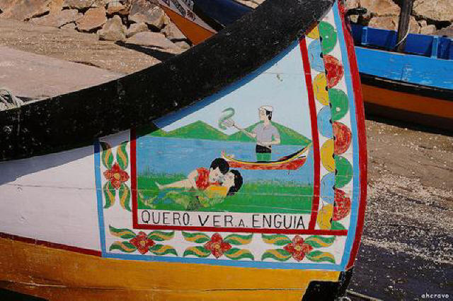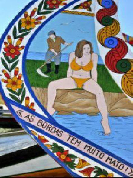 Coquins, ...... les Moliceiros d'Aveiro ![]() Nous vous avions parlé de ces fameux bateaux originaux, qui occupent une belle place touristique dans notre Venise Portugaise, AVEIRO; Aujourd'hui, nous vous faisons découvrir les belles couleurs et les belles images peintes, à l'avant et à l'arrière de chaque embarcation colorée, et entretenues avec un soin tout particulier, par leur propriétaire. Chaque Moliceiro à son image propre et souvent basée sur la coquinerie légendaire des portugais, qui savent rire de tout et de la bagatelle en particulier. Sous chaque photo nous aurions espéré mettre la traduction des messages "in french" afin que vous puissiez gouter la subtilité de chaque commentaires sans trop vous creuser la tête, mais le langage portugais est quelque fois très difficile à traduire. et même Mr Google n'est pas assez fort pour ça.