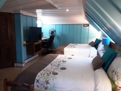 Nous avions un petit chalet réservé, mais Daria nous propose si nous le voulons de changer de chambre pour les deux jours car ils avaient eu une défection de clients américains (à cause de l'ouragan IRMA en Floride).