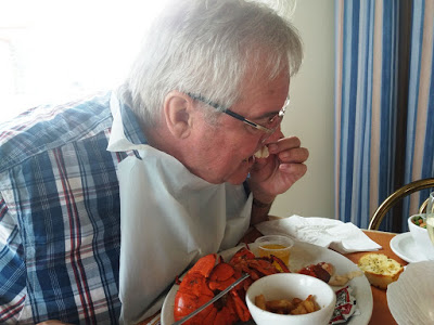 Bien que certains ont lancé la rumeur, comme quoi .... que les homards dans notre assiette étaient en plastique, nous avons fait un repas fabuleux, le homard était délicieux et il faut dire que l’on nous avait affublés du bavoir d’autorité. C’est plus prudent.