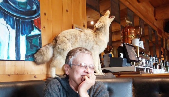 Nous en avons le souffle coupé, nous allons prendre le déjeuner dans cet immense hôtel de bois, en gros rondins.
